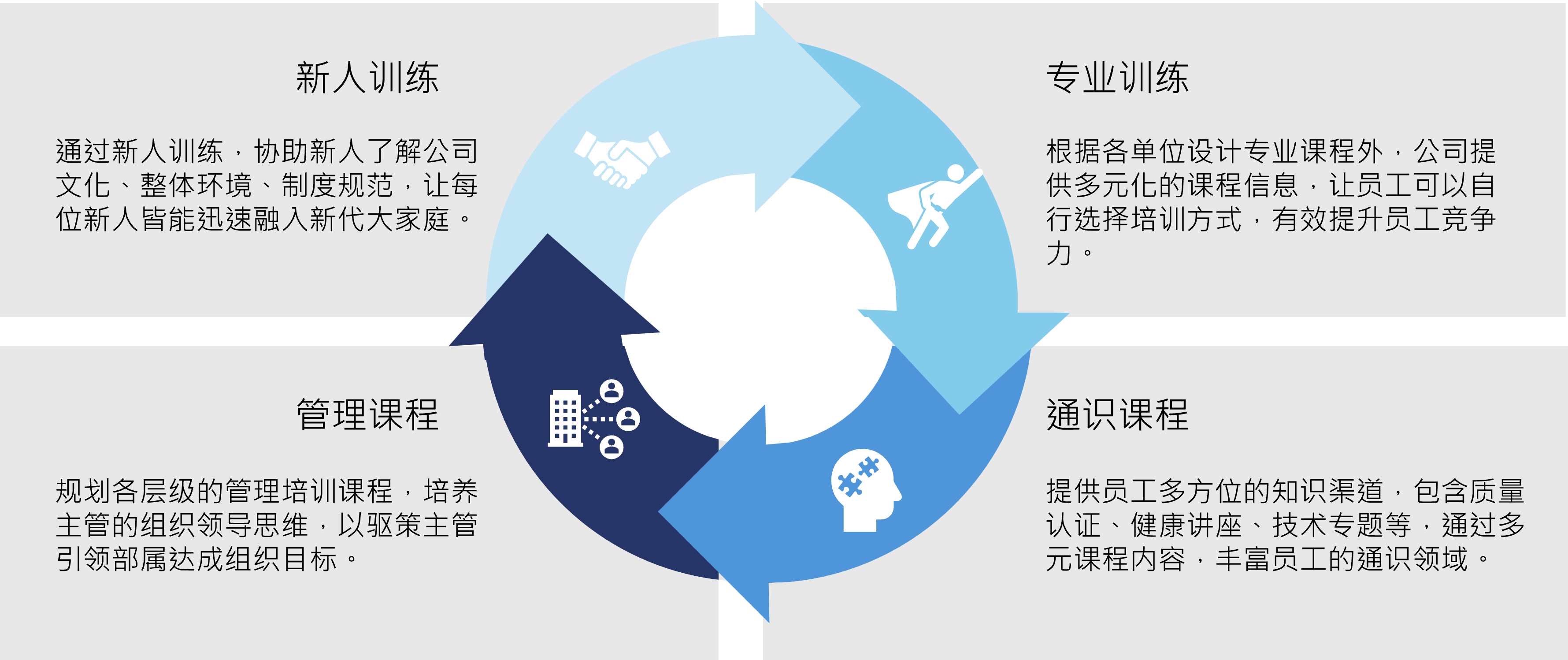 新代重视同仁工作与生活平衡的职场环境,提倡员工关怀与照顾,并提供竞争力的薪酬制度,以及丰富多样的福利待遇。同时,我们致力于给予员工职业发展的舞台与机会,营造令员工感到幸福的工作环境。欢迎您加入我们,展开一段充满挑战与机遇的职业旅程!