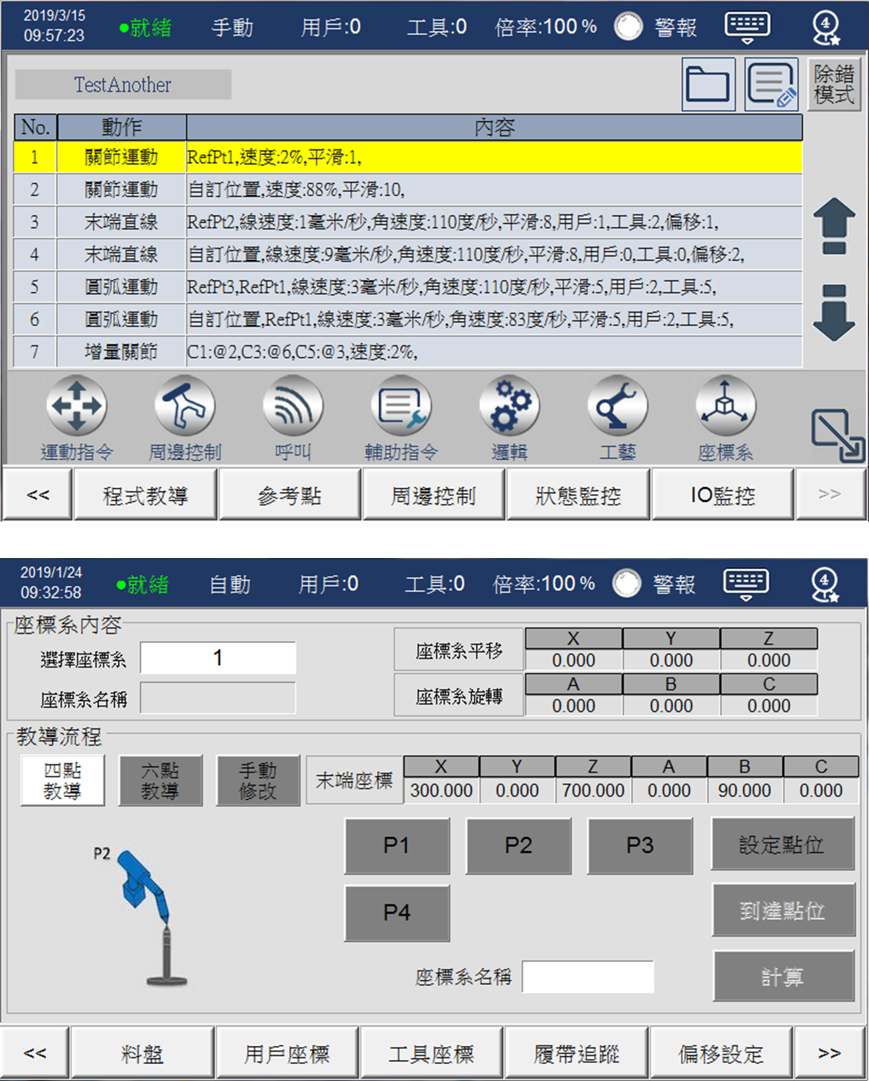 -沿袭CNC系统高速高精的优点,支持路径差补,速度规划平顺、支持转角平滑,增加取放效率、提供直线指另外更提供圆弧指令奇异点回避