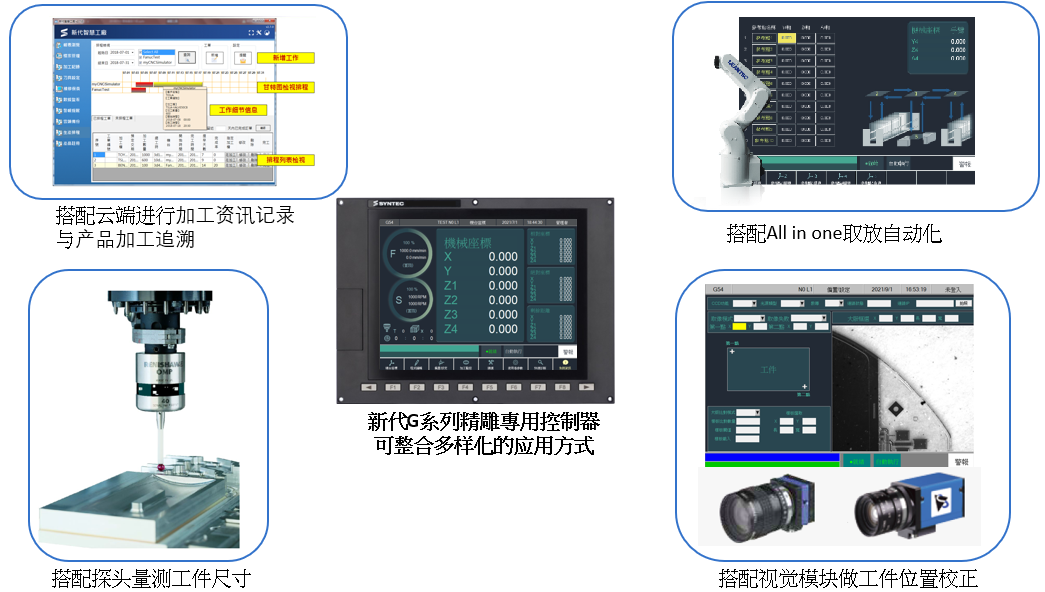 - 行业专用:多Z刀具寿命管理、多Z对刀检测、多通道独立、高光专用刀库表等