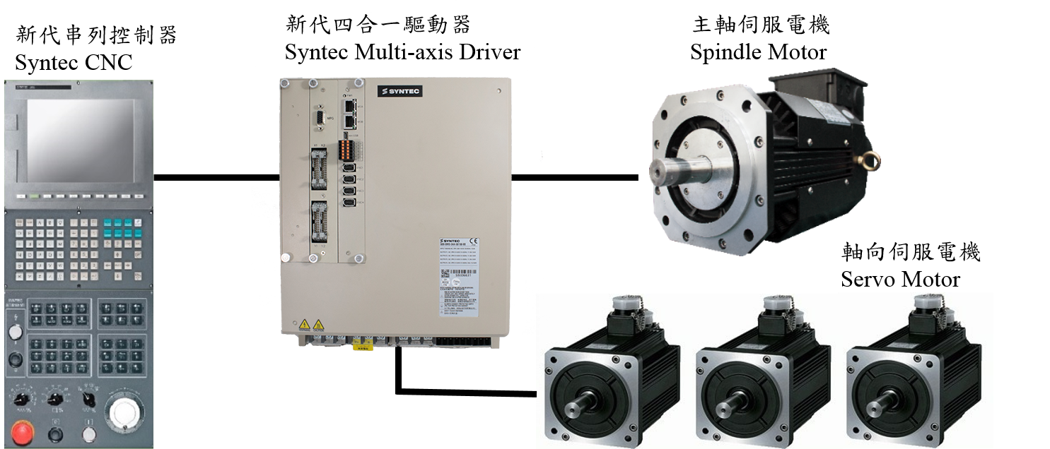 -四合一驱动架构,满足机床丶自动化等应用之轴控需求-主轴最高达援1-5KW驱动规格丶轴向最高达3KW驱动规格