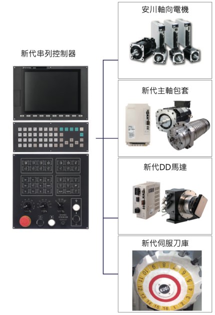Mechatrolink-II/Mechatrolink-III串列通讯伺服系统,通讯频宽大幅提升到100Mbps,解析度最高可支援到24位元,有效提高加工的平滑性。串列通讯控制方式配线简单,扩充性高,抗干扰能力强,对比泛用脉冲控制更能提高整体系统的弹性与可靠度。