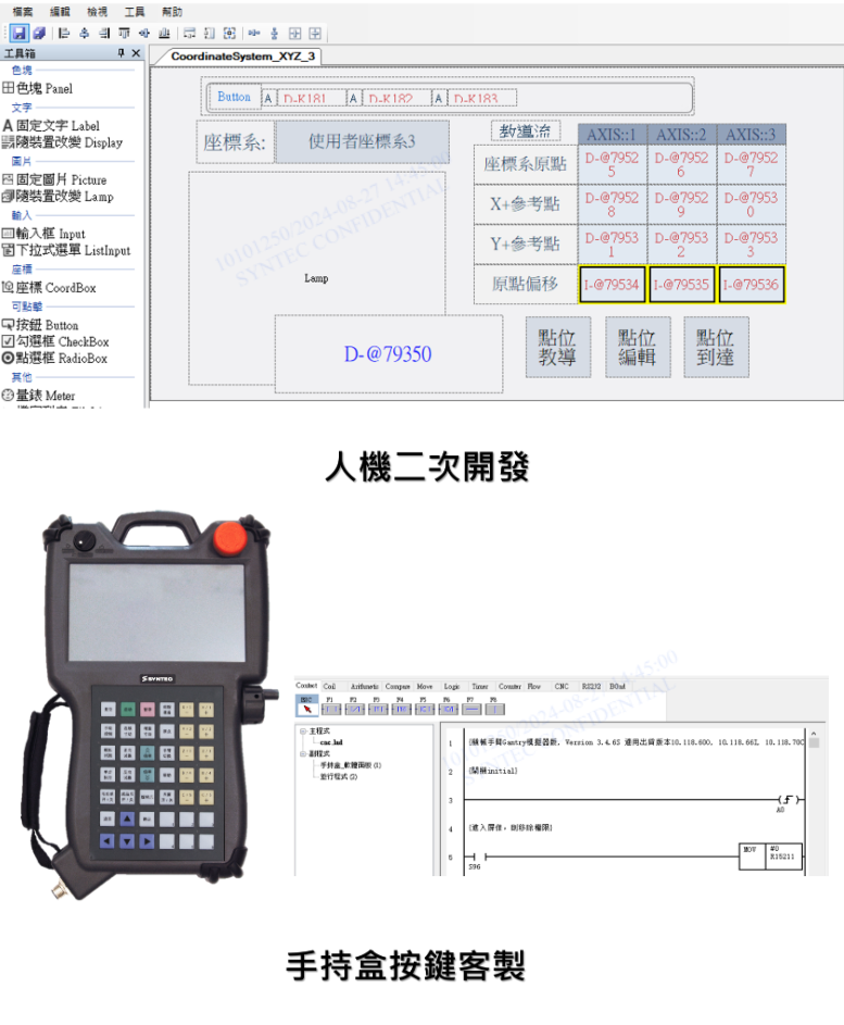 提供SyntecIDE软体工具,依需求客制PLC、人机、MACRO、手持盒按键。