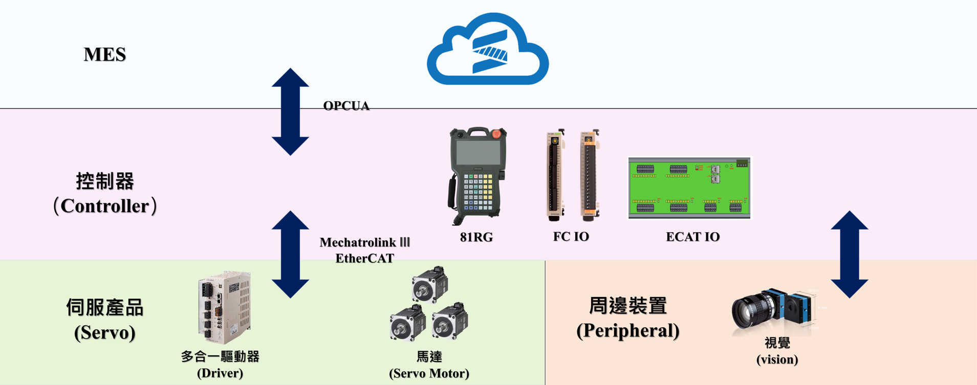 -支援一对一、一对多、双臂、产线型应用 -支援M3、ECAT通讯,对接开放伺服 -支援Modbus TCP, EtherNet/IP工业网路通讯 -标配4轴,至多18轴
